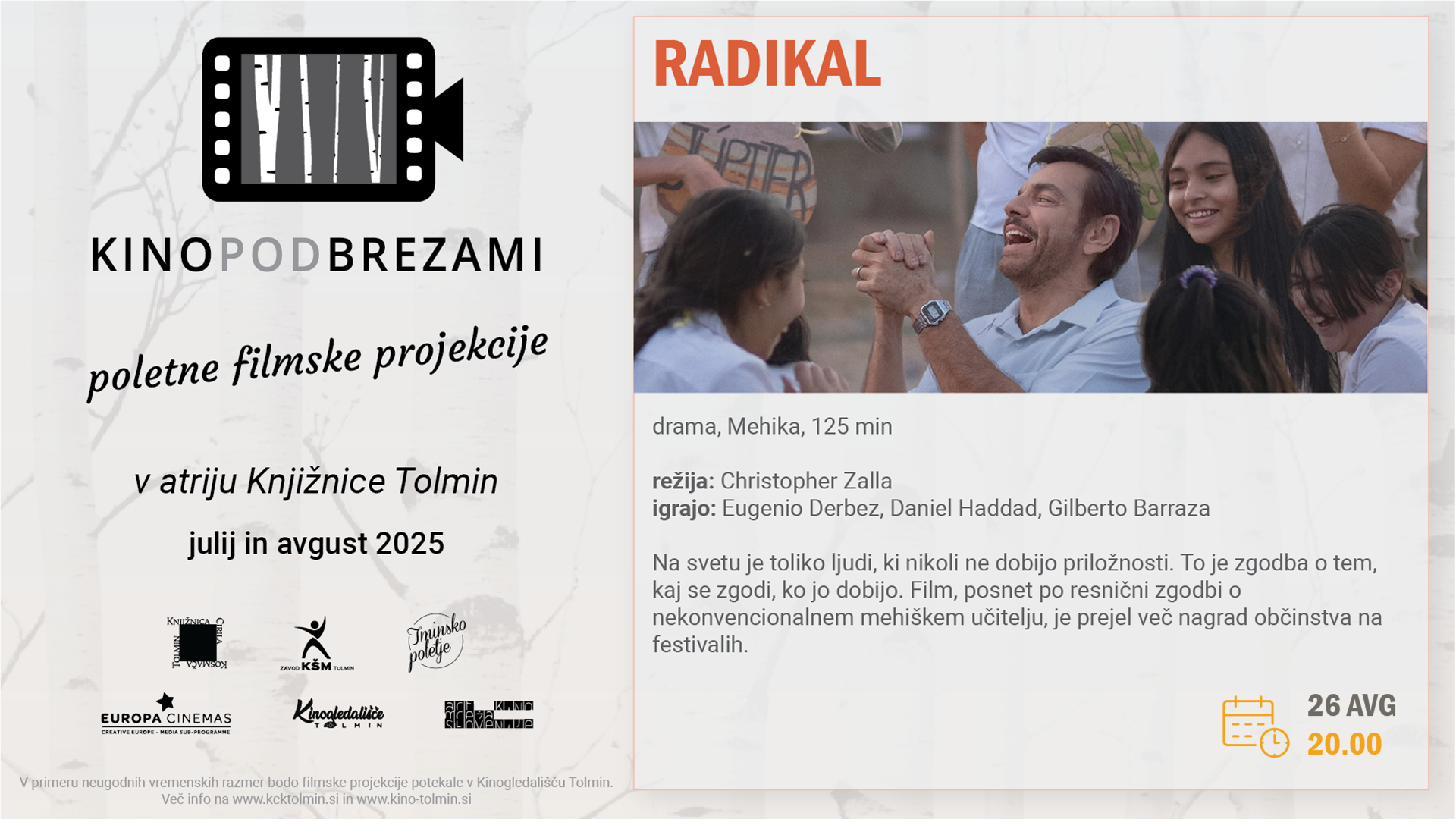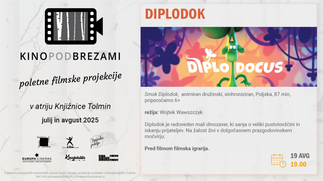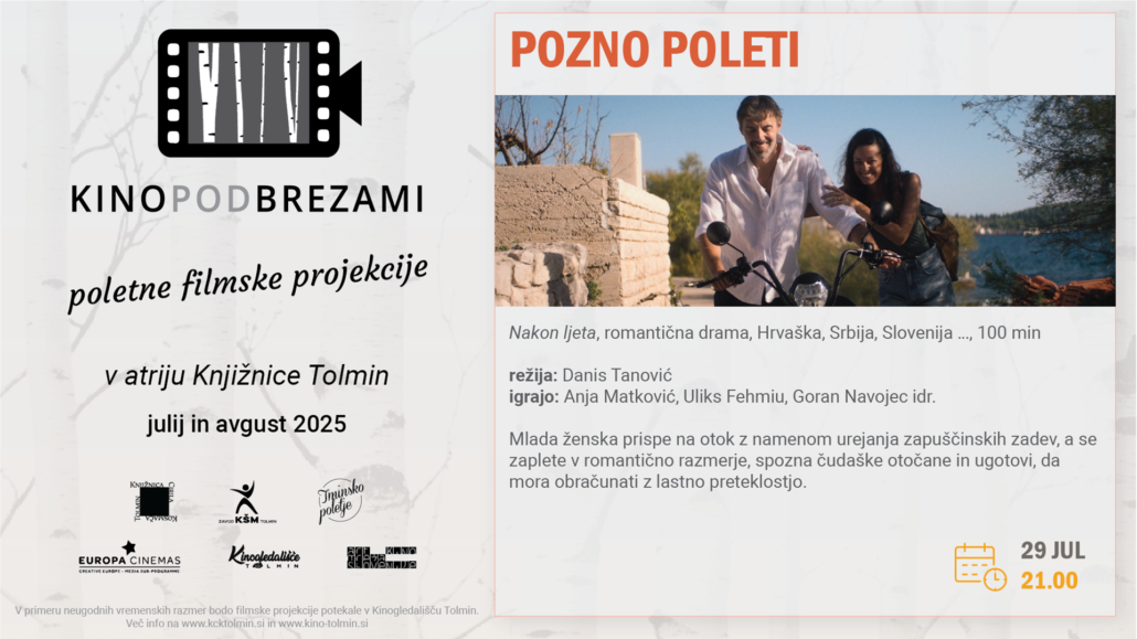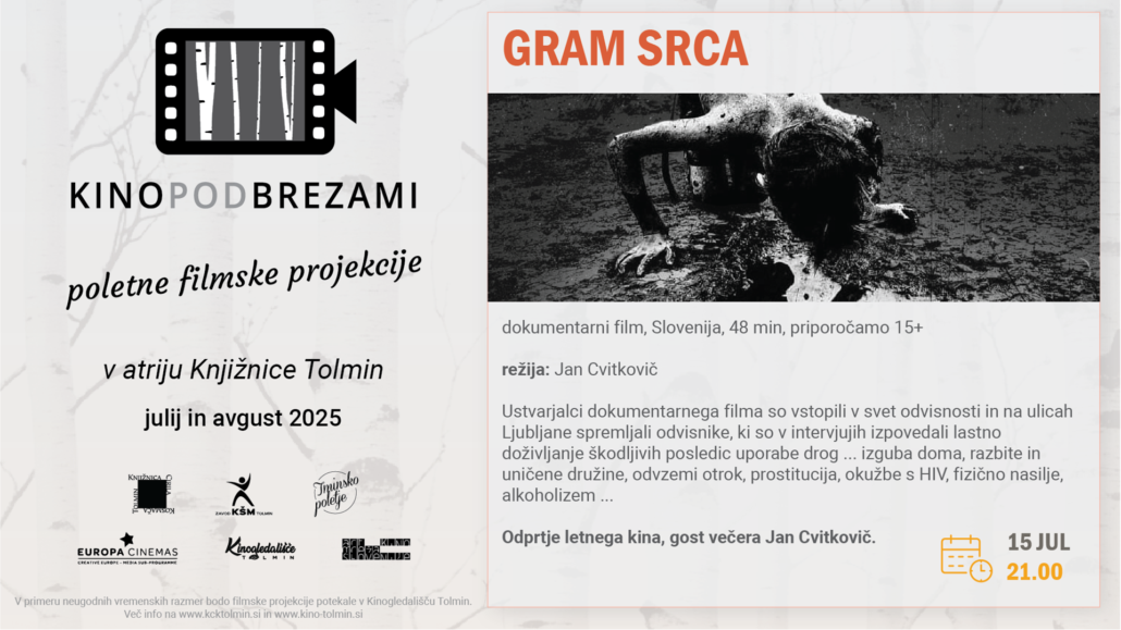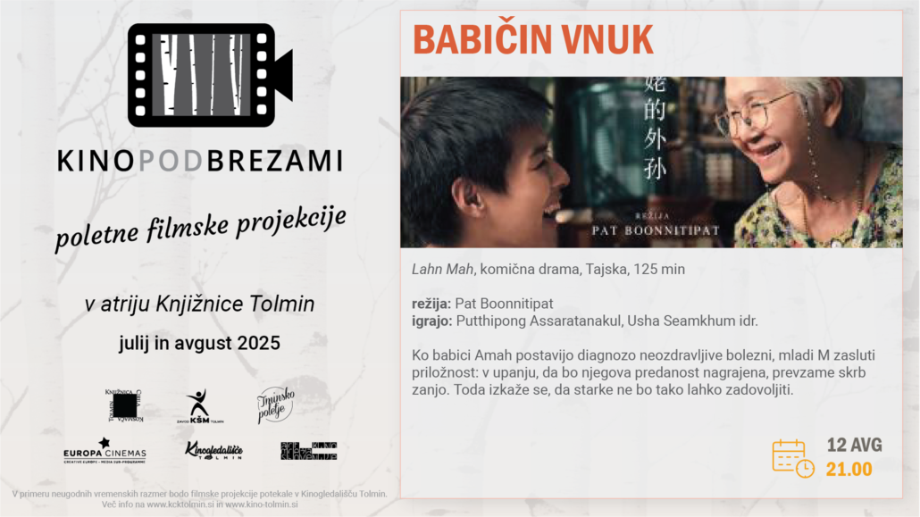 V atriju Knjižnice Tolmin se je s poletnimi počitnicami že 10. leto izvajal Kino pod brezami. Do konca poletja se je skupno vsak torek odvilo 6 filmskih projekcij: Kino pod brezami 2025